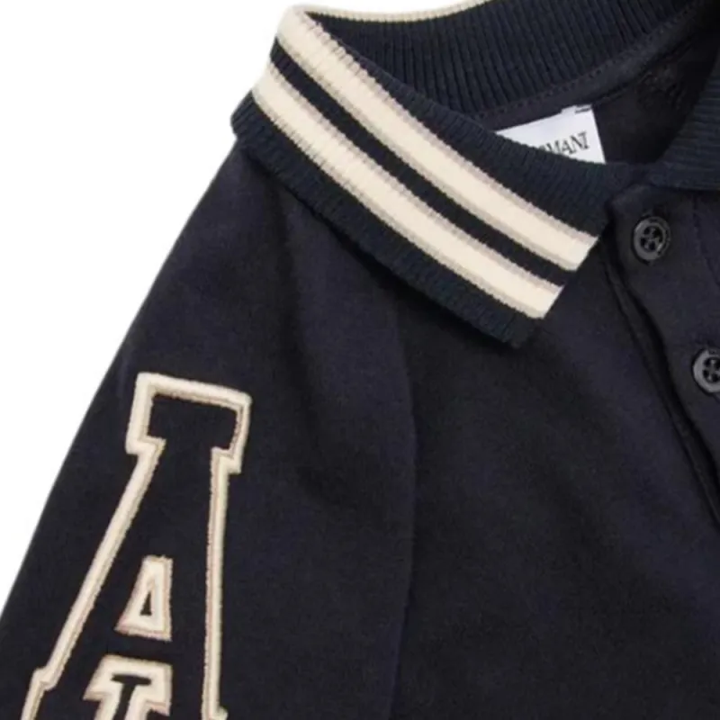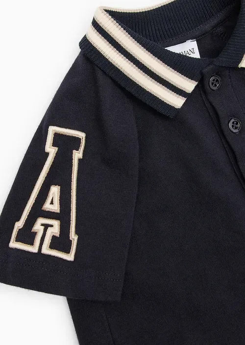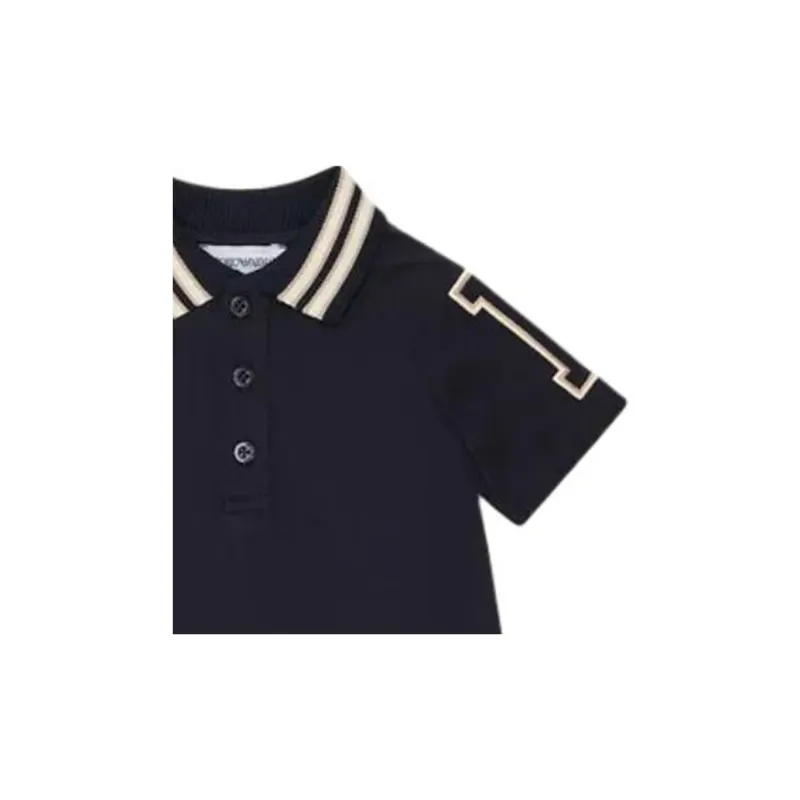 Emporio Armani Т-рубашка из жерси с поло и увеличенной вышивкой EA цвет морской синий для младенцев и малышей