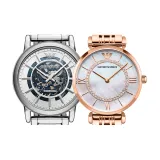 EMPORIO ARMANI Гипсофила Round Watch Dial Collection Наручные часы Кварцевый механизм Ремешок из нержавеющей стали 43 мм