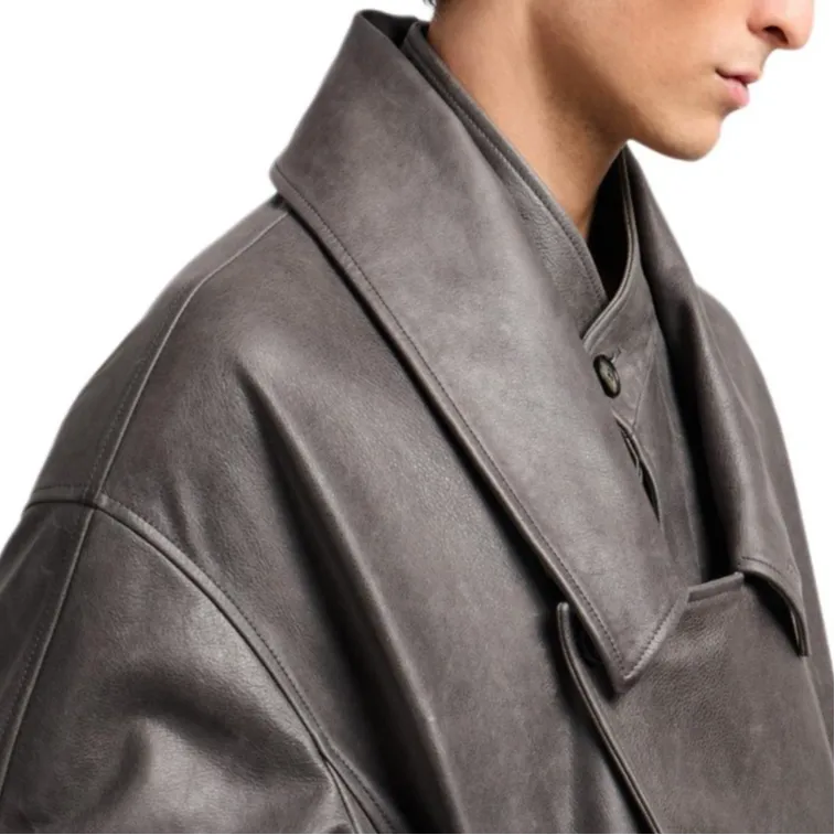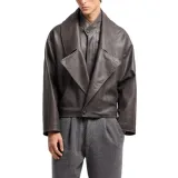 GIORGIO ARMANI Серый Мужская Кожаная Куртка