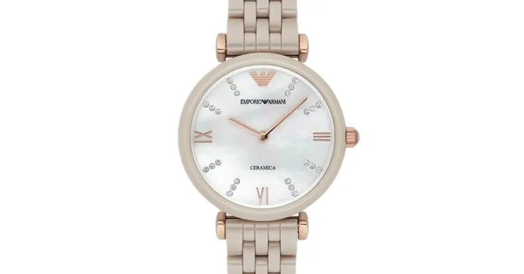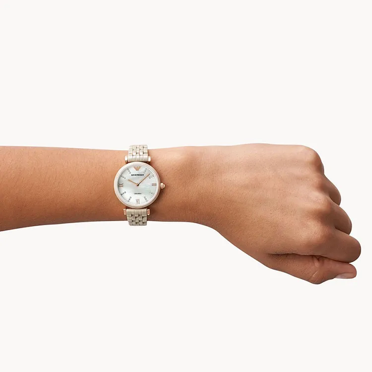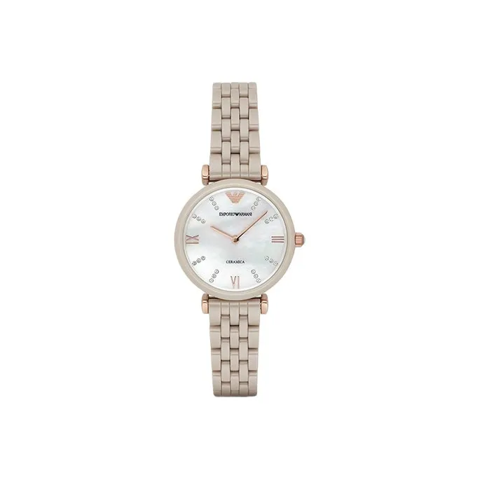 EMPORIO ARMANI Наручные часы Кварцевый механизм Керамика Ремешок 32 мм Жемчужная раковина Циферблат Цвет Женские часы AR1498
