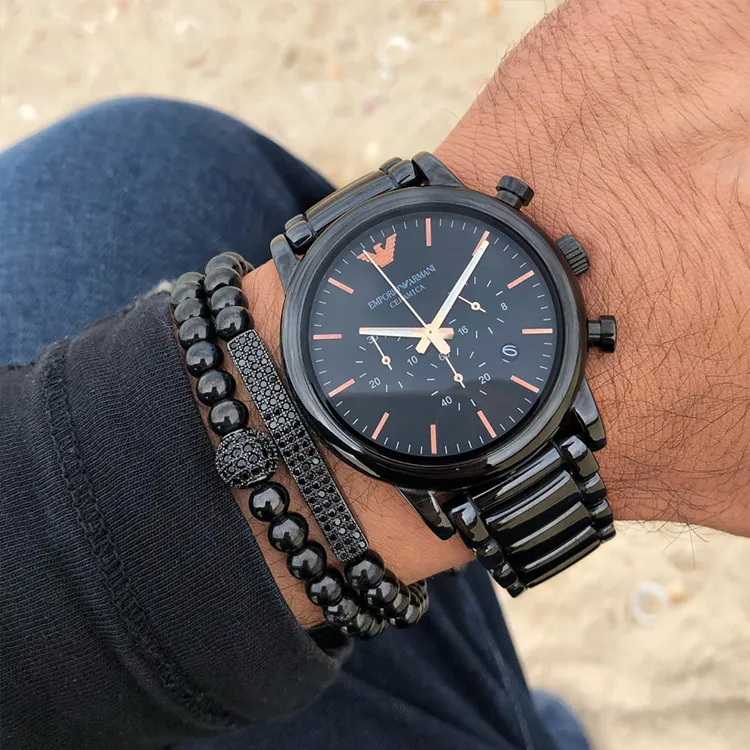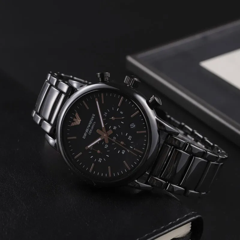 EMPORIO ARMANI Мужские часы Кварцевый механизм Керамика Ремешок Черный циферблат