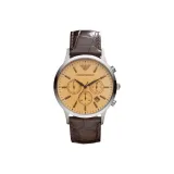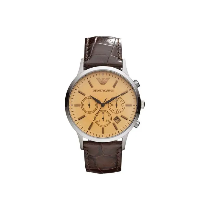 EMPORIO ARMANI Мужские часы Кварцевый механизм Естественная кожа Ремешок Золотистый циферблат