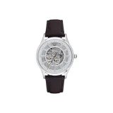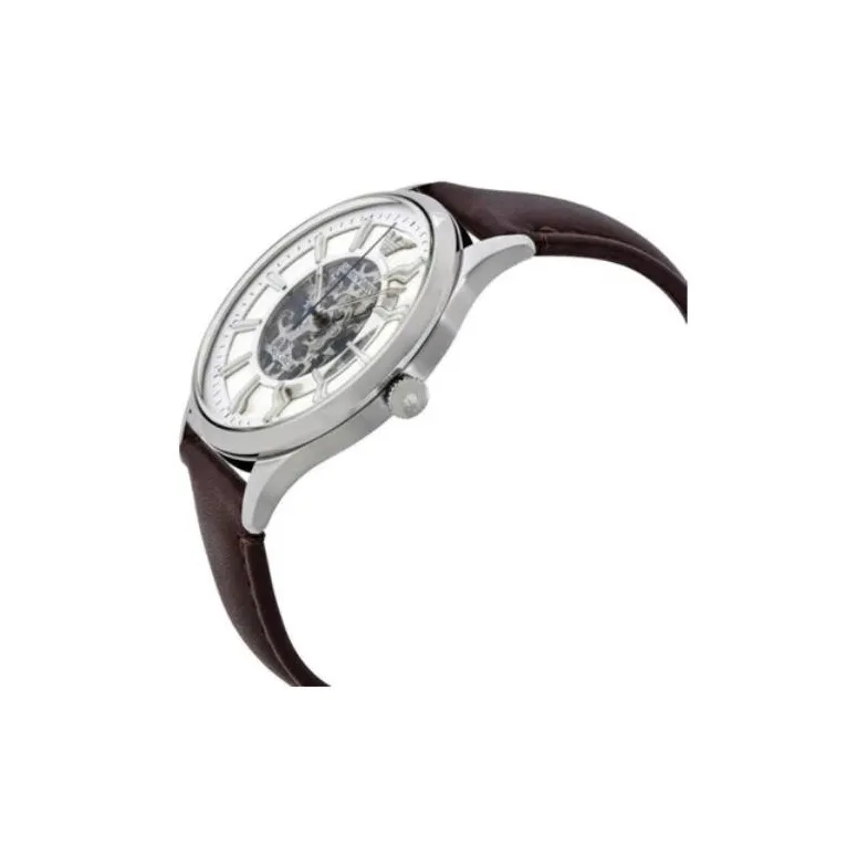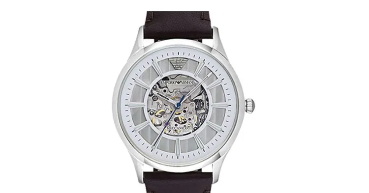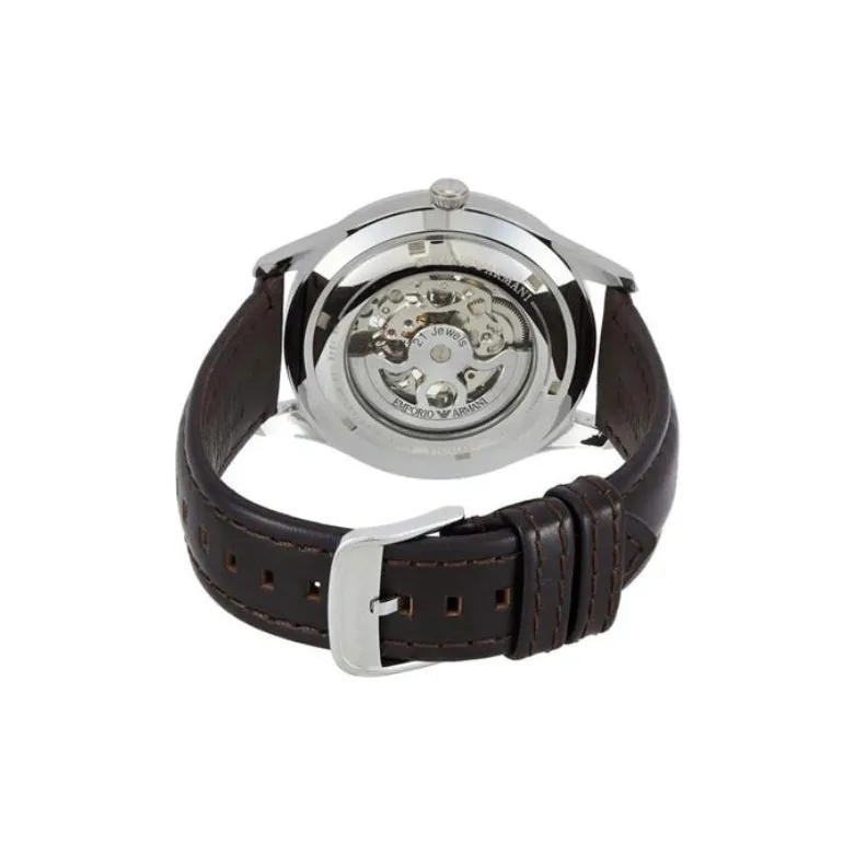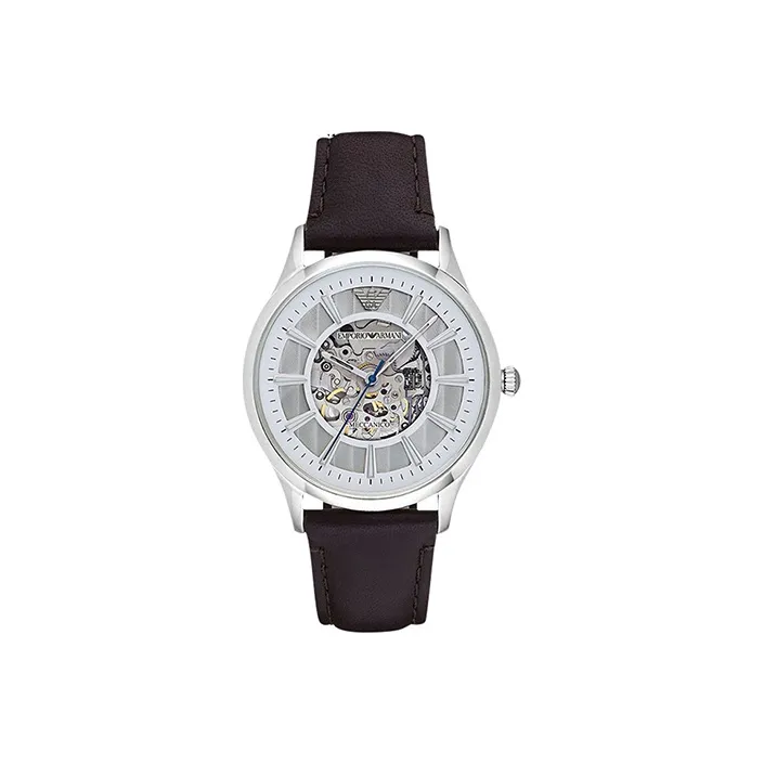 EMPORIO ARMANI Мужские часы Кварцевый механизм Естественная кожа Ремешок Серебристый циферблат