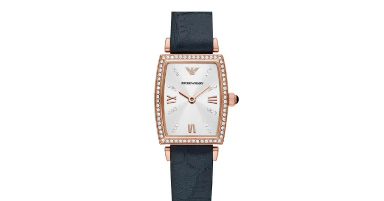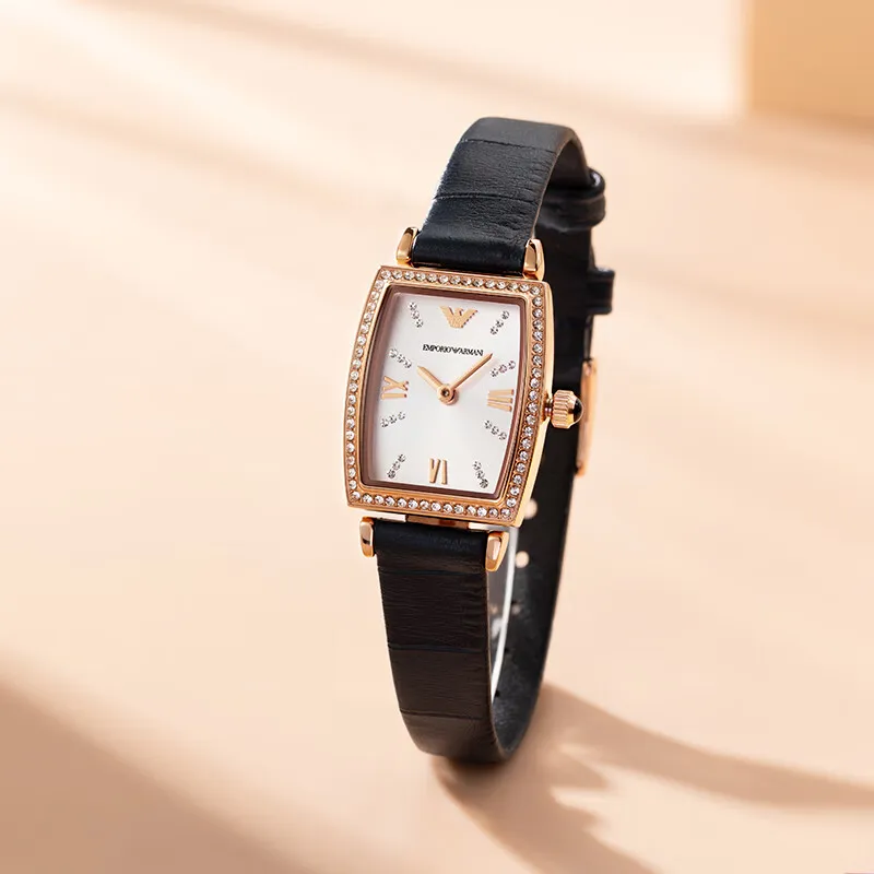 EMPORIO ARMANI Наручные часы Кварцевый механизм Кожаный ремешок 26 мм Серебристый циферблат Женские часы
