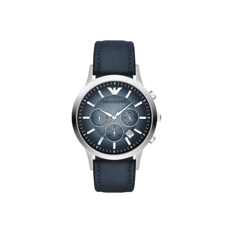 EMPORIO ARMANI Наручные часы Кварцевый механизм Кожаный ремешок 43 мм Синий циферблат Мужские часы