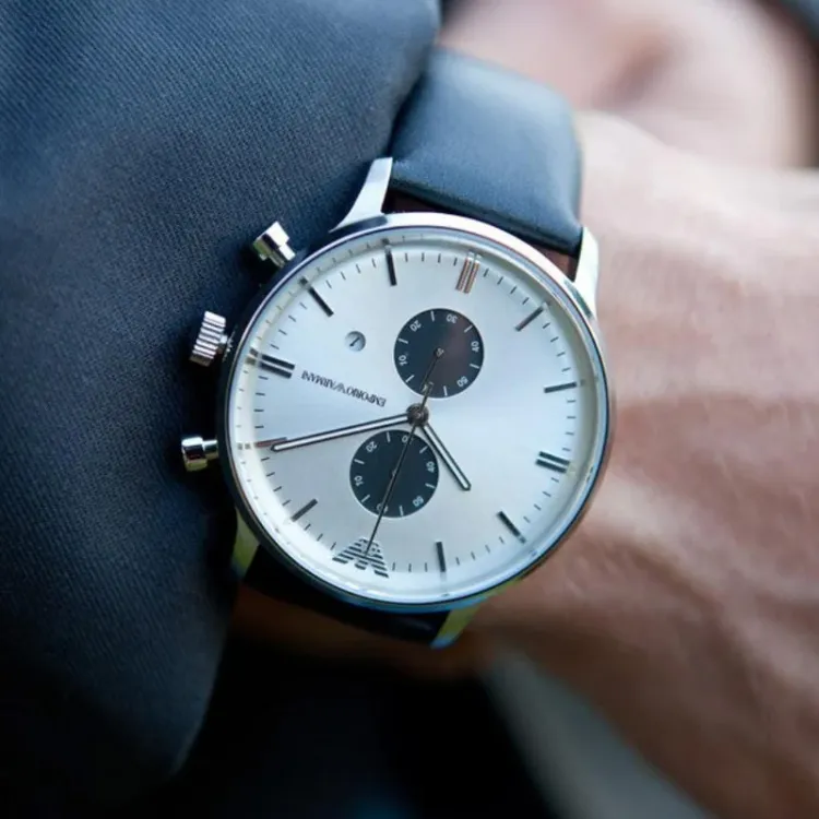 EMPORIO ARMANI Watch Кварцевый механизм Кожаный ремешок 43 мм Серебристый циферблат Унисекс AR0385