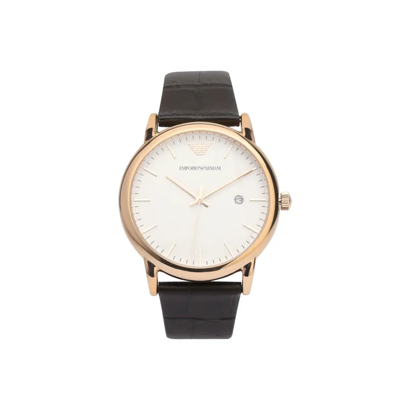 EMPORIO ARMANI Мужские часы Кварцевый механизм Кожаный ремешок Белый циферблат