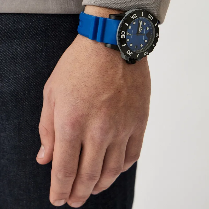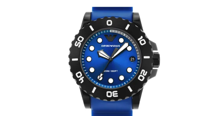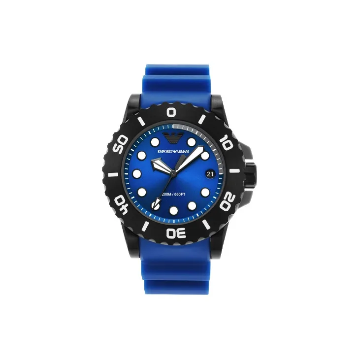 EMPORIO ARMANI Часы Кварцевый механизм Резиновый ремешок Синий циферблат Мужской AR11476