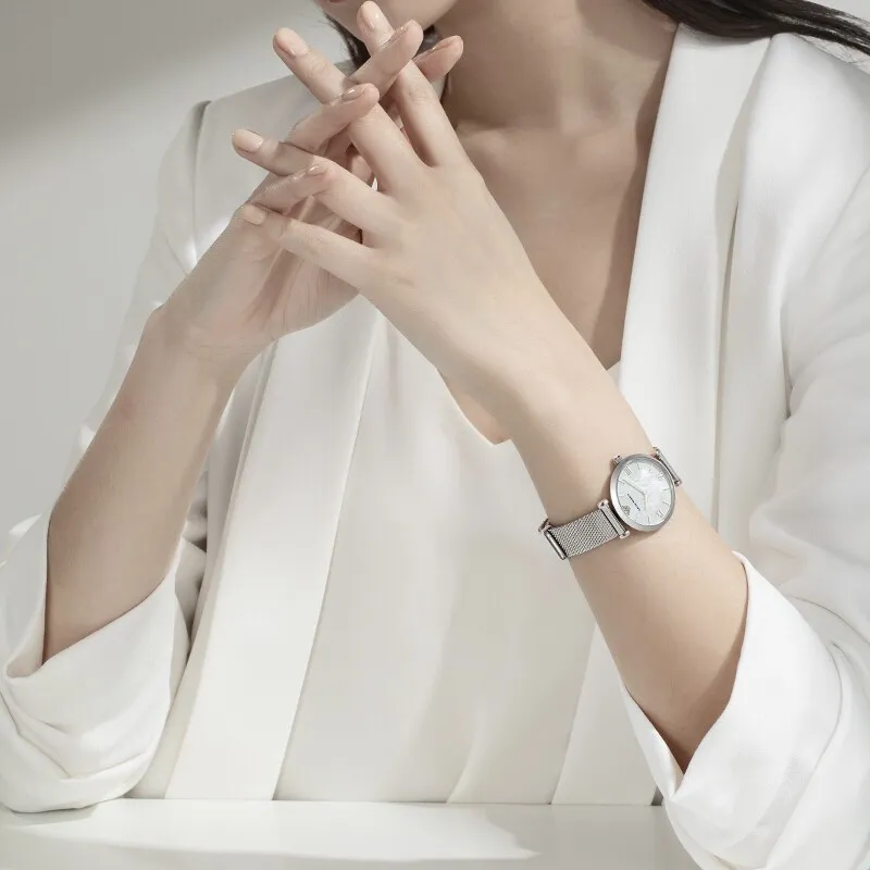 EMPORIO ARMANI Women's Watch Кварцевый механизм ремешок из нержавеющей стали 32 мм белый циферблат
