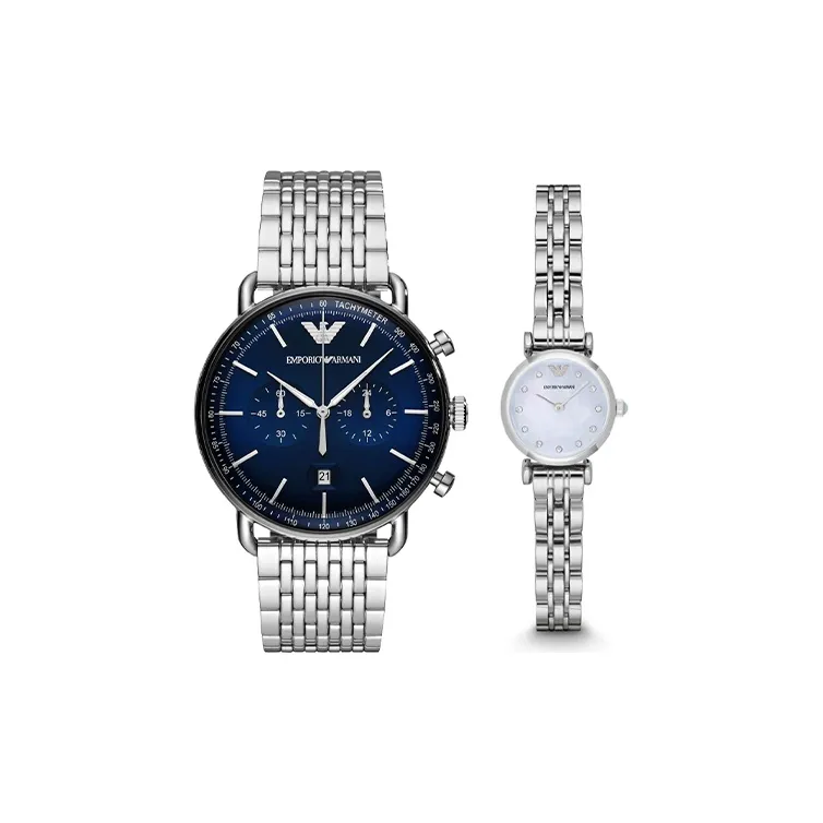 EMPORIO ARMANI Наручные часы Кварцевый механизм Нержавеющая сталь Ремешок 43 мм Черный циферблат Унисекс AR11238+AR1961