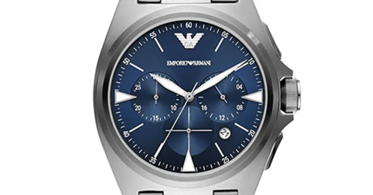 EMPORIO ARMANI Мужские часы Кварцевый механизм Ремешок из нержавеющей стали Синий циферблат Часы AR11411