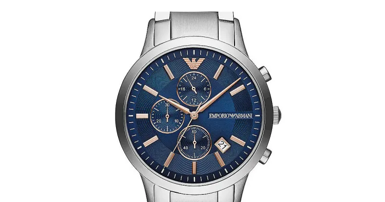 EMPORIO ARMANI Мужские часы Кварцевый механизм Ремешок из нержавеющей стали Синий циферблат Часы AR11458