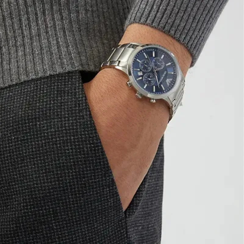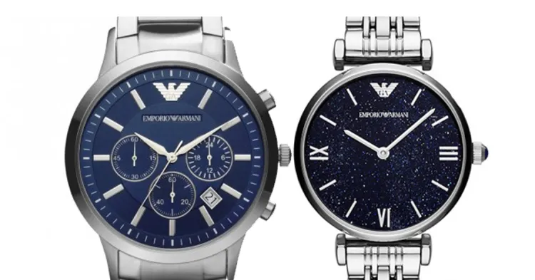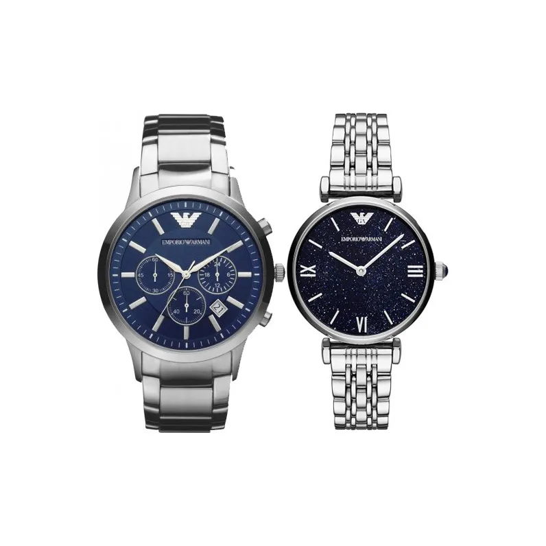 EMPORIO ARMANI Наручные часы Кварцевый механизм Ремешок из нержавеющей стали Синий циферблат Унисекс AR2448+AR11091