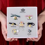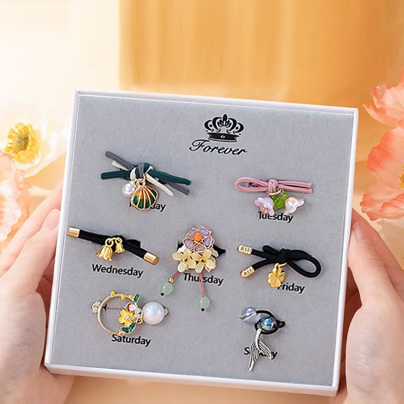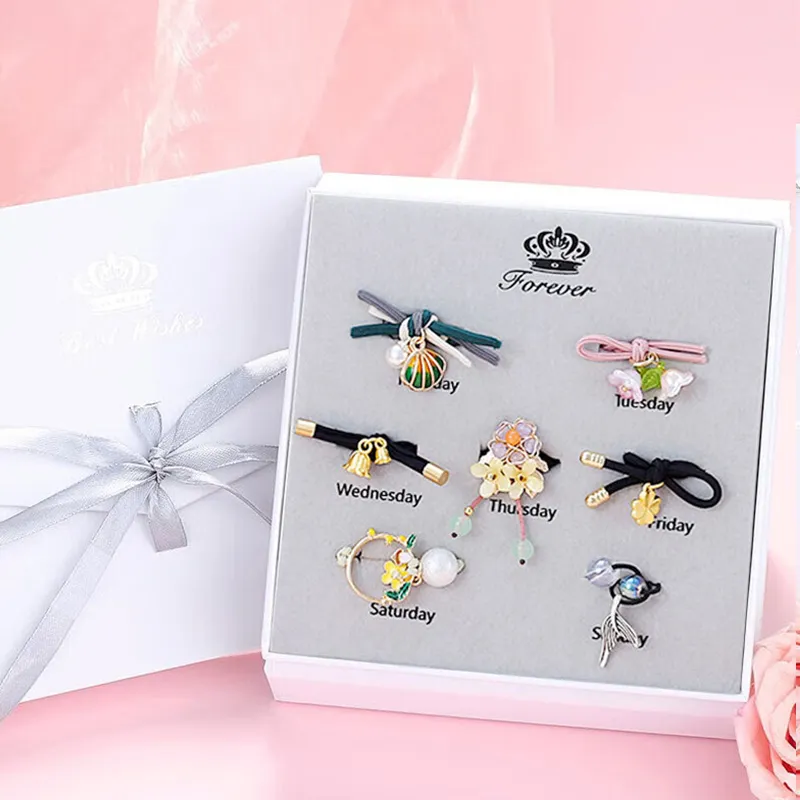 Счастливый Четырехлистный Клевер Резинка для волос Семь предметов [Подарочная коробка Набор]