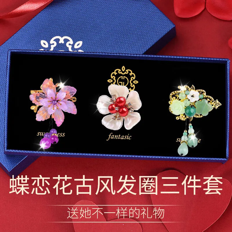 Стиль:TY380 Butterfly in Love with Flower Традиционный китайский стиль Резинка для волос Трехкомпонентный комплект