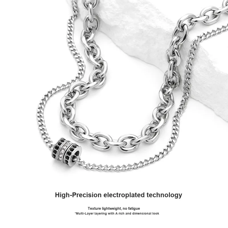 Стиль:[Черный Ромб] Маленькая круглая подвеска, цепочка для слоев