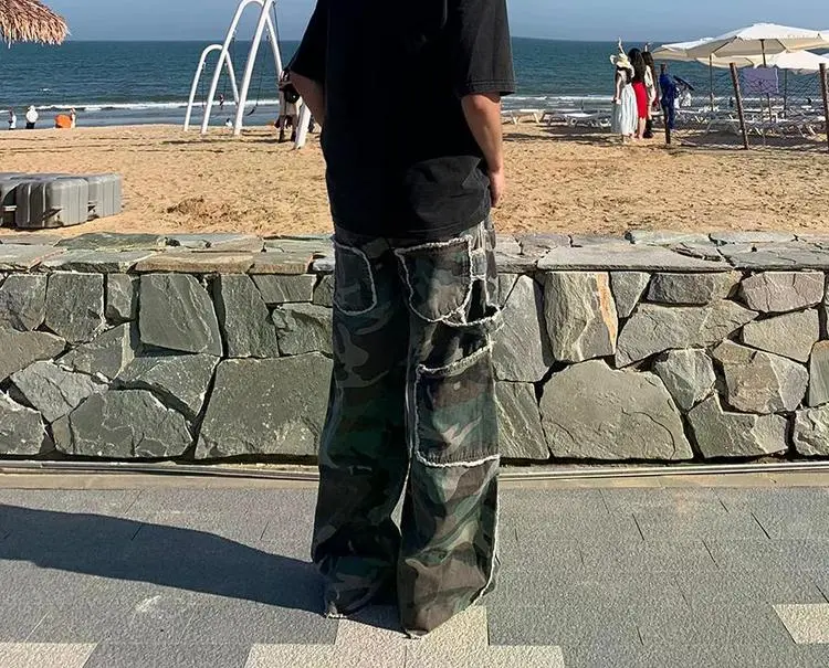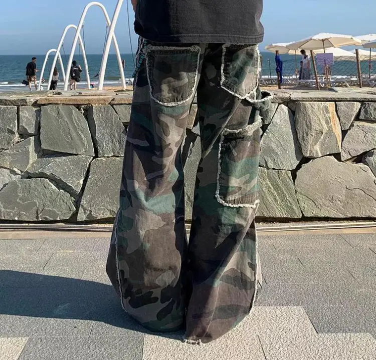 ENPofficial Весна And Осенний Джинсы Свободный крой Повседневный Широкие штаны С обтрепанным краем Дизайн Cleanfit Штаны Унисекс