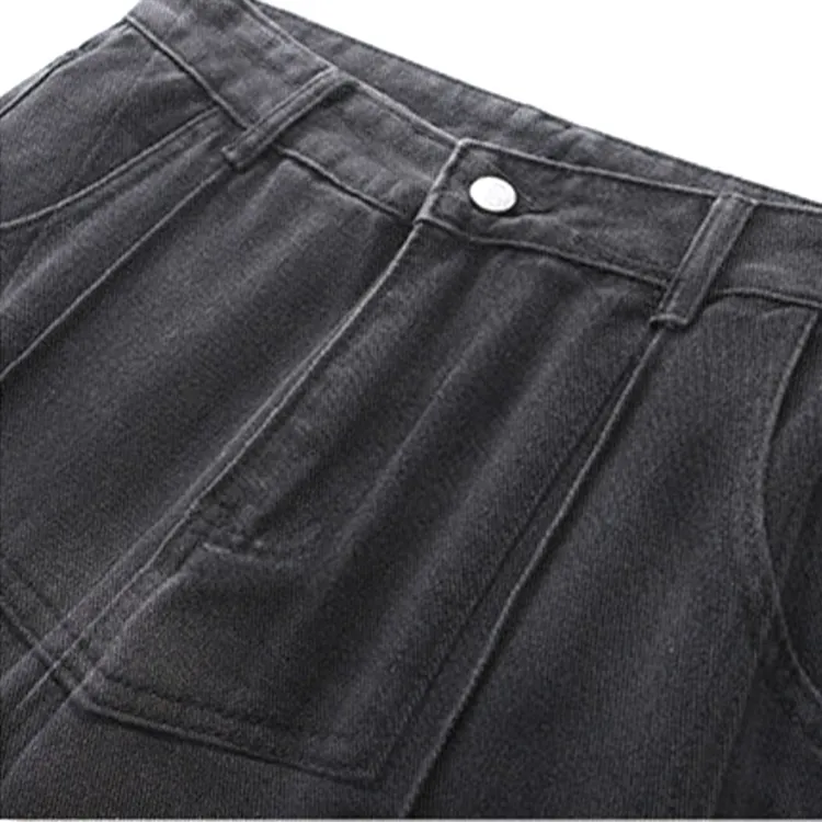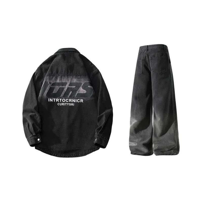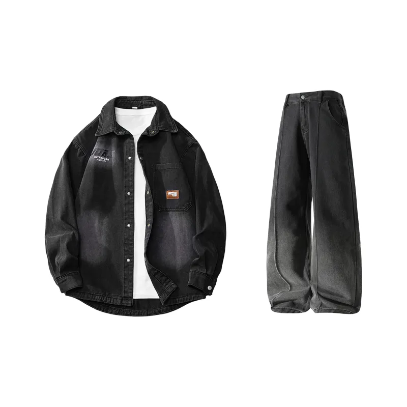 Комплект:Чёрная серая джинсовая куртка + чёрные джинсы