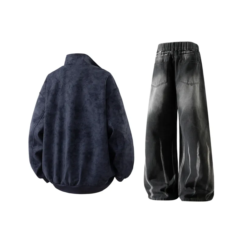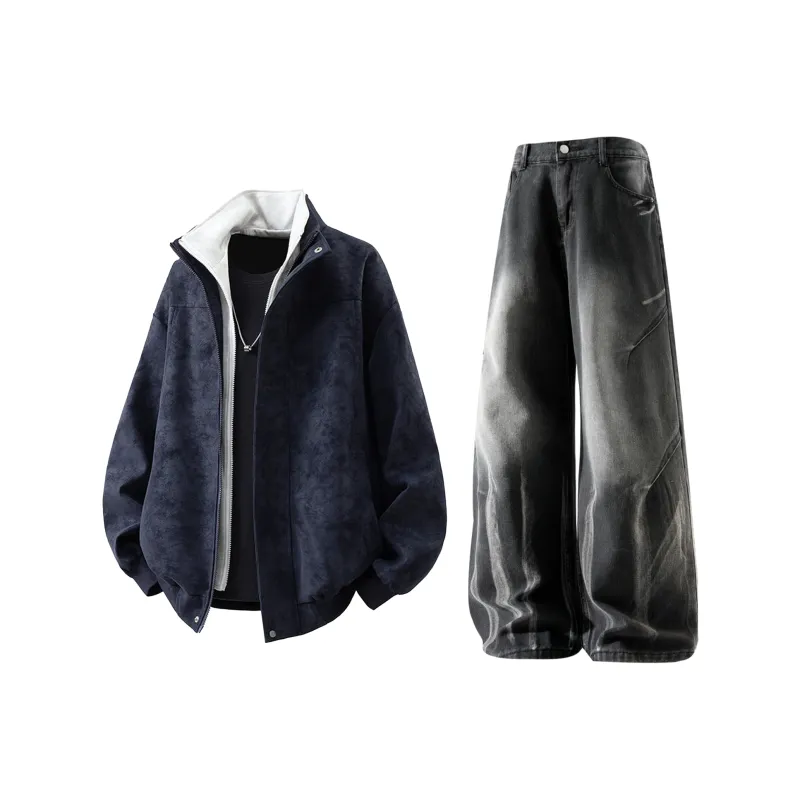 Комплект:Темно-синяя куртка + черные джинсы