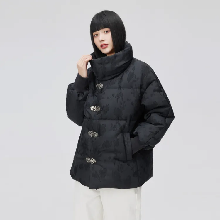 ERAL Абстрактный узор воротник-стойка утолщенный короткий пуховик женский