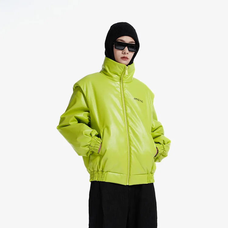 ERAL Однотонный Воротник-стойка Свободный крой Пуховик Женский Неоново-зеленый
