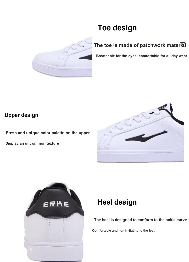 Erke Устойчивый к истиранию Легкий And Дышащий Низкие Кроссовки для скейтбординга Мужские Белый Черный