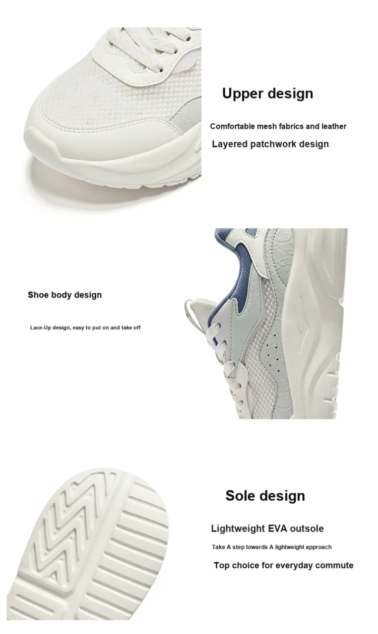 Erke Harmonious Wind 1,0 Устойчивый к истиранию Низ Резистентный Низкий Топ Повседневный Женский Микрокристалл Белый Пыльный Синий