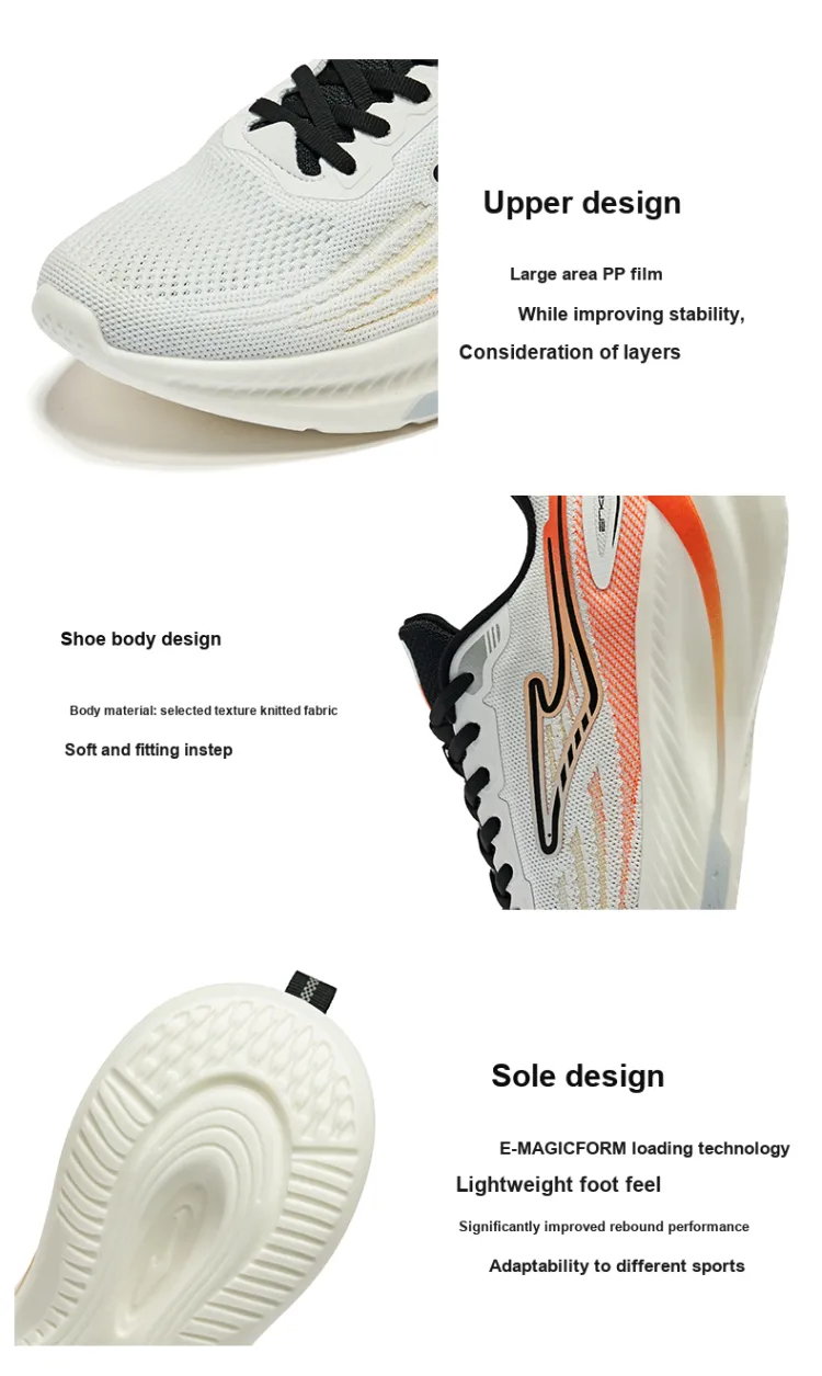 Erke Амортизация Дышащий Устойчивый к истиранию Низкий Топ Беговые кроссовки Мужской Белый Erke Флуоресцентный Пламя Оранжевый
