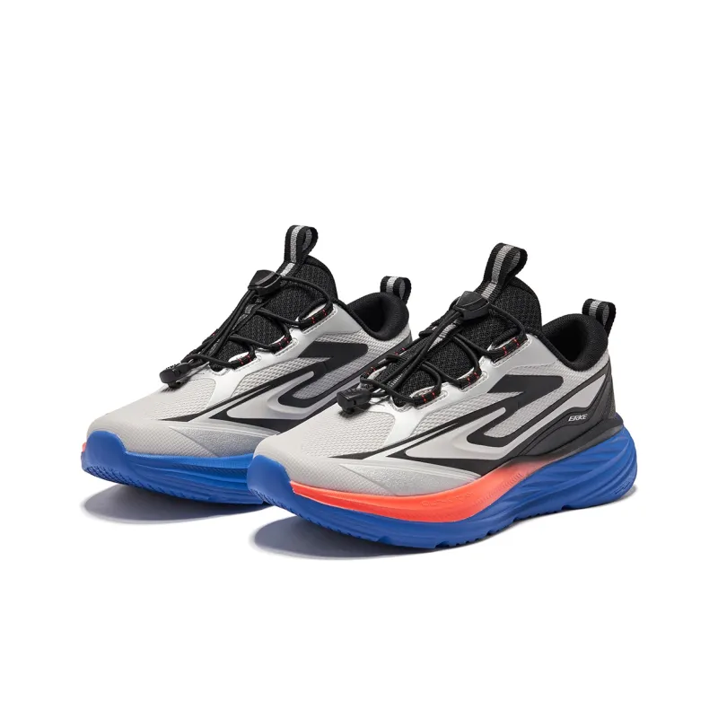ERKE KIDS Противоскользящий Легкий Амортизирующий Низкий Топ Детская Беговая Обувь Туманно-Серый Глубокий Черный Детский