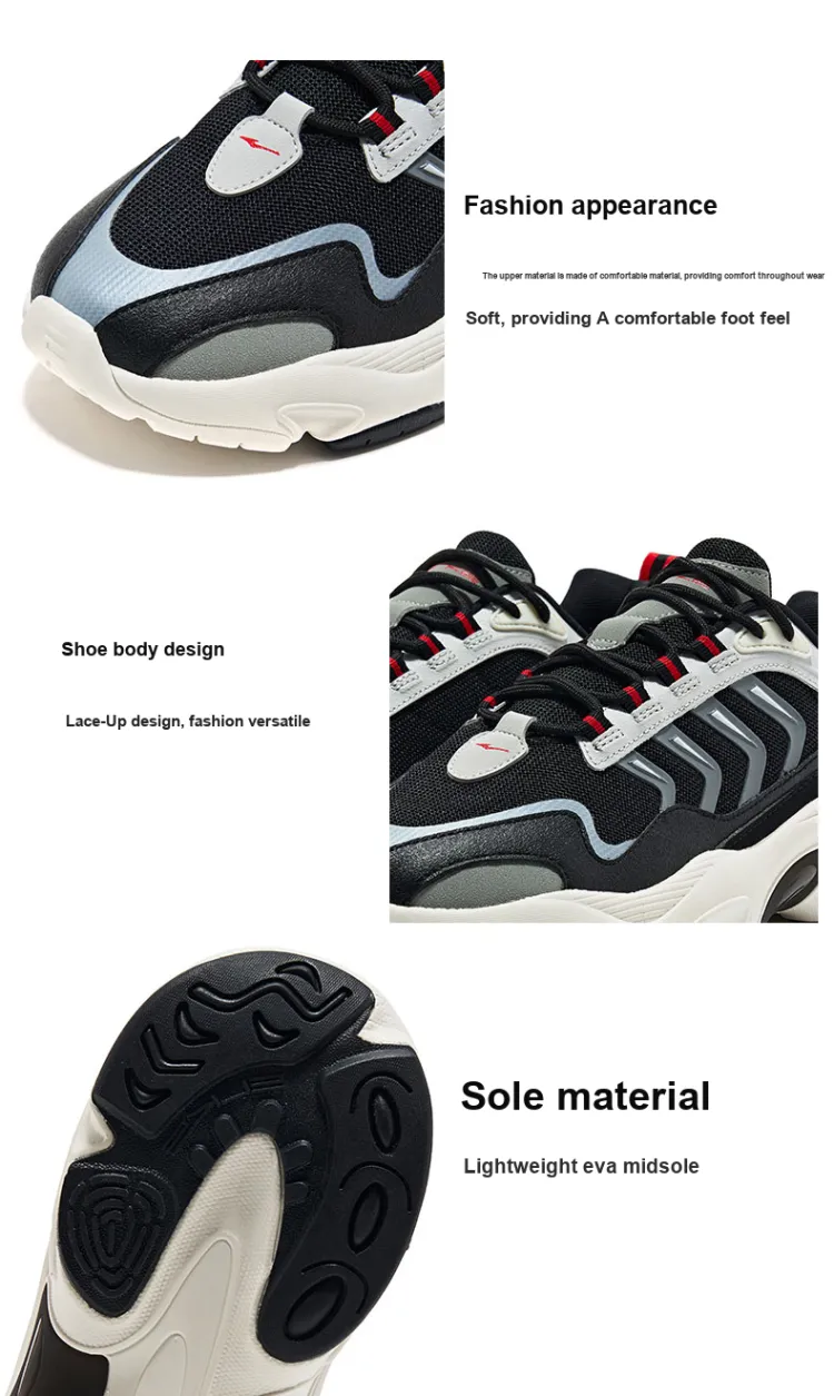 Erke Seeking Light Low Топ Беговые кроссовки Мужской Черный Белый