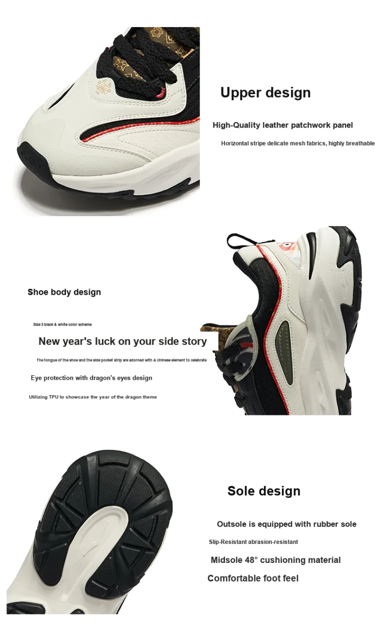 Erke Soaring Dragon Устойчивый к истиранию Низкий Топ Повседневная обувь Мужская Микрокристаллический Белый Джет Черный