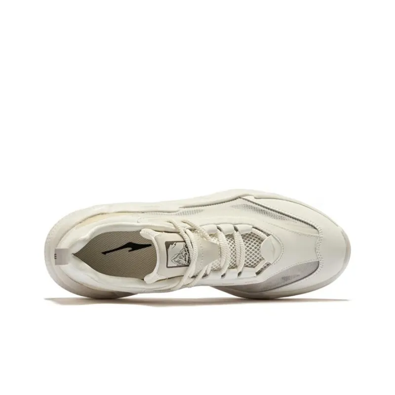 Erke Wu Yandang 3,0 Амортизация Износостойкий Низкий Топ Толстая Подошва Кроссовки Мужские Микрокристаллический Белый Дикий Серый
