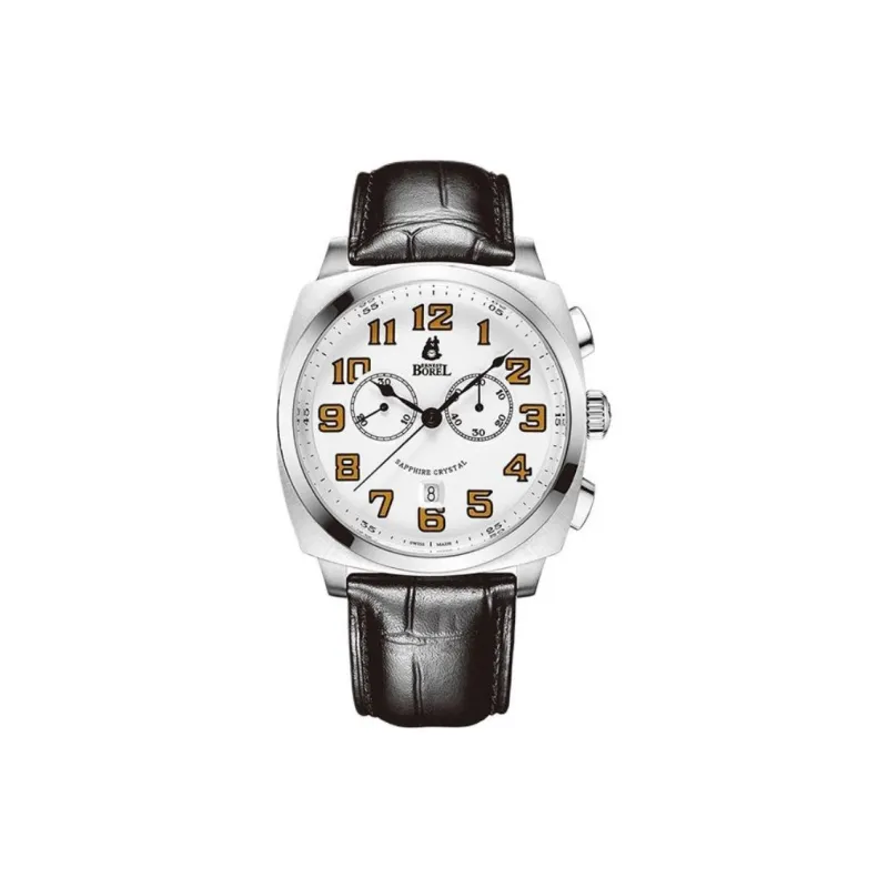 ERNEST BOREL Винтаж Кварцевый механизм Мужские часы Циферблат 44 мм Белый корпус из нержавеющей стали