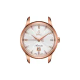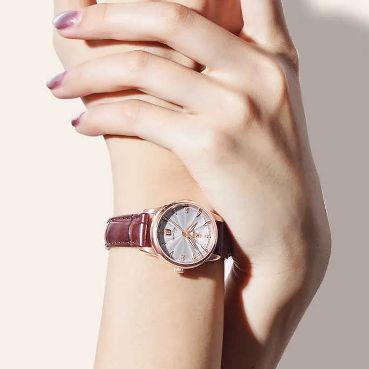 Белый циферблат, розовое золото, корпус, коричневый кожаный ремешок