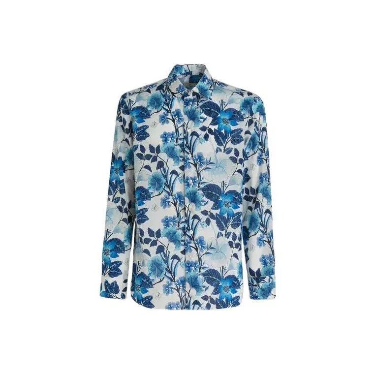 ETRO Синий с Белым Lettering Мужские Рубашки
