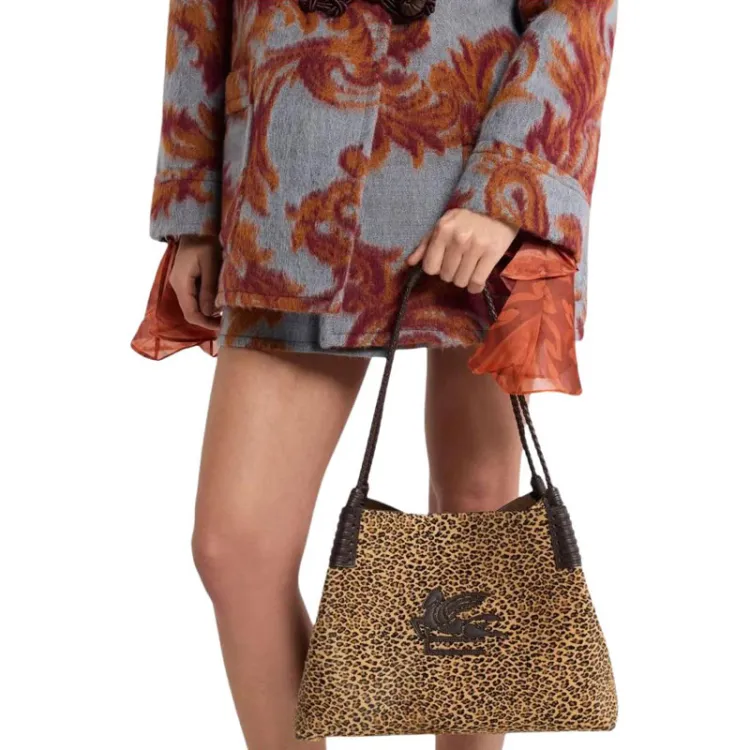 ETRO Сумка из телячьей кожи через плечо маленькая женская светло-коричневая