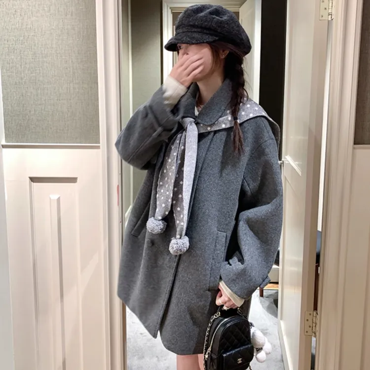 Цвет:Серый шаль пальто