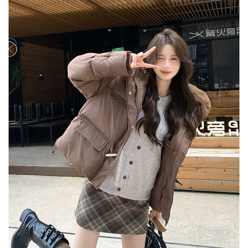 Цвет:Коричневый хлопковый пуховик