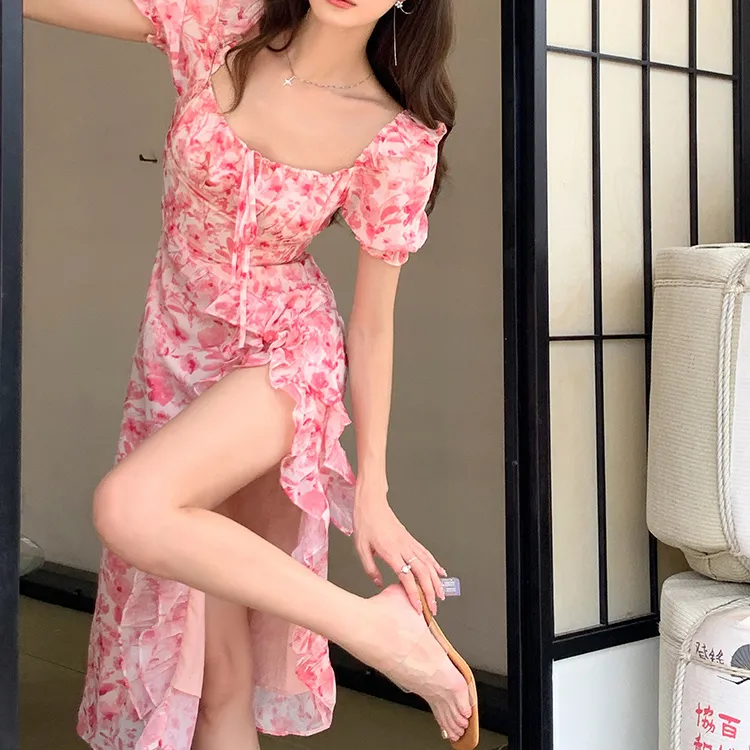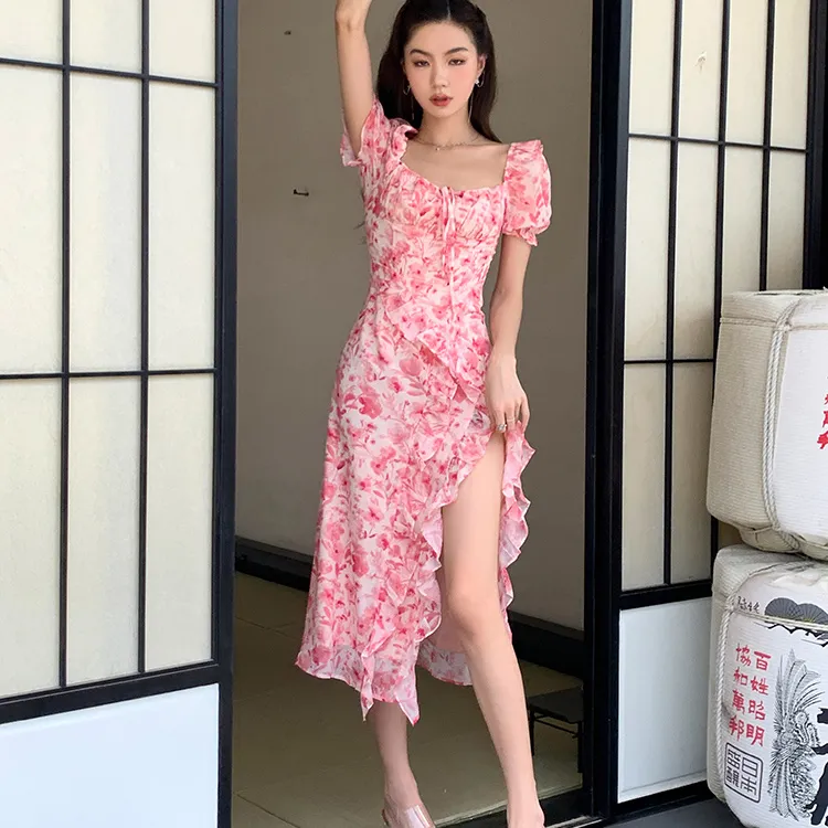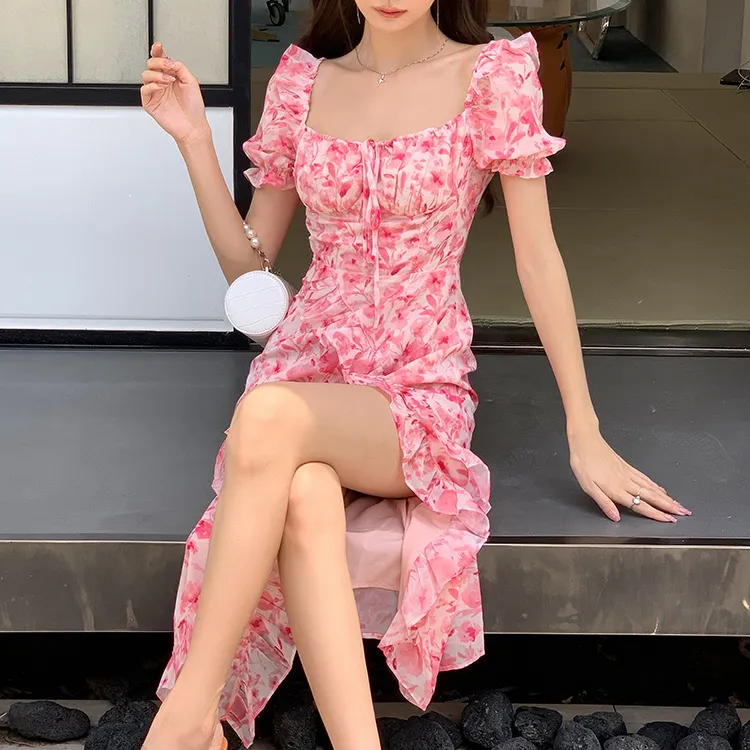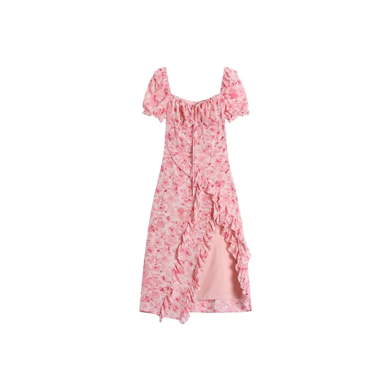 ETSE Короткий рукав Платье Женское Розовое