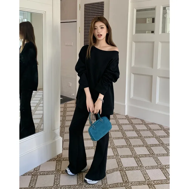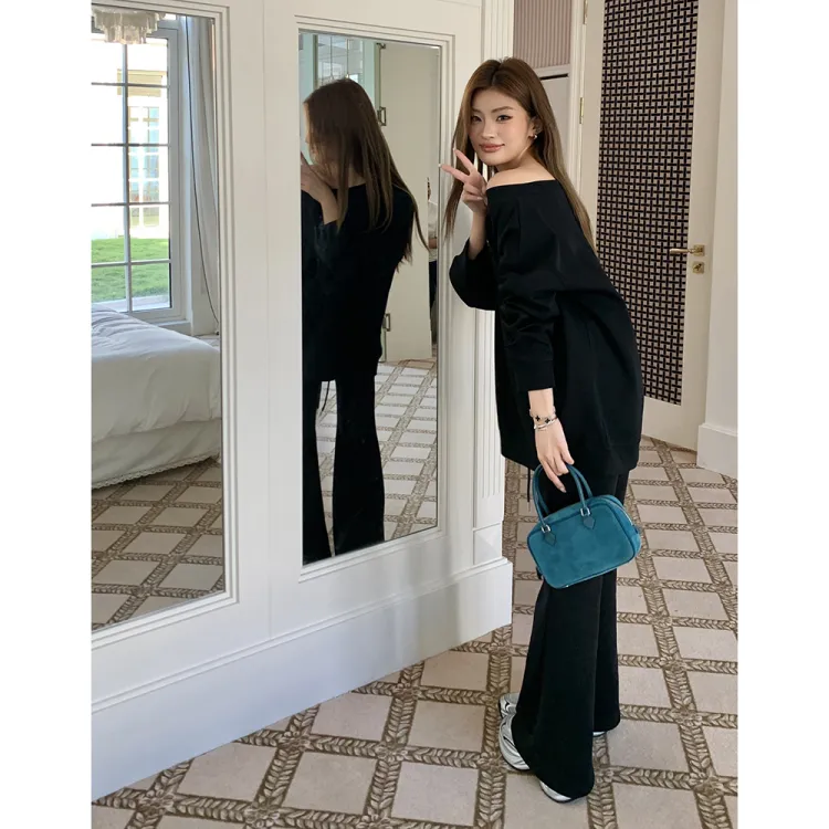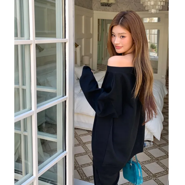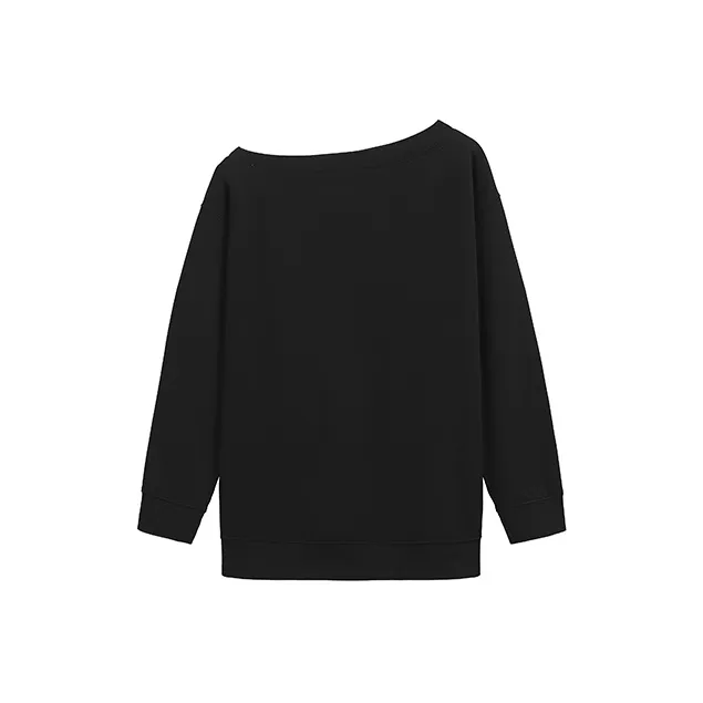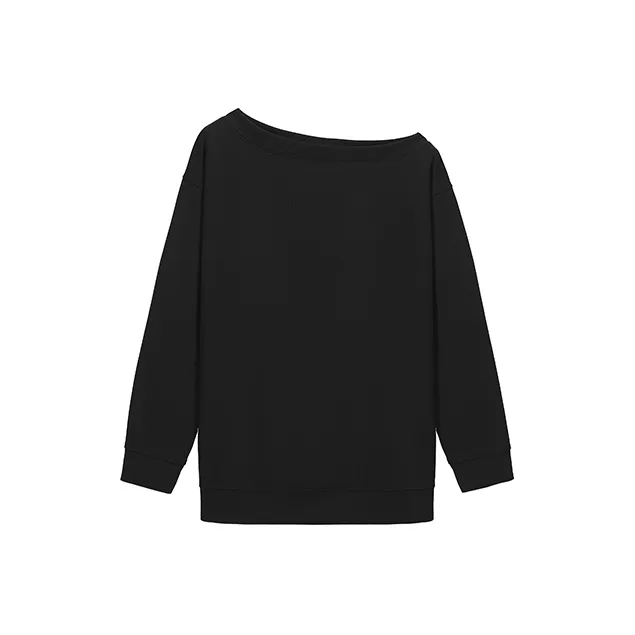 ETSE Черный Асимметричный Плечо Толстовка Женские Толстовки