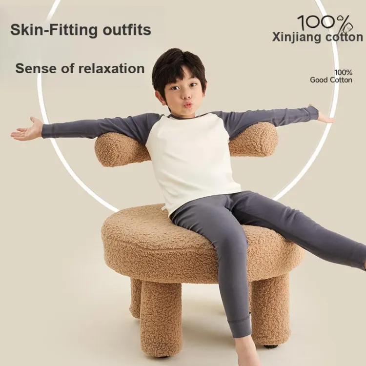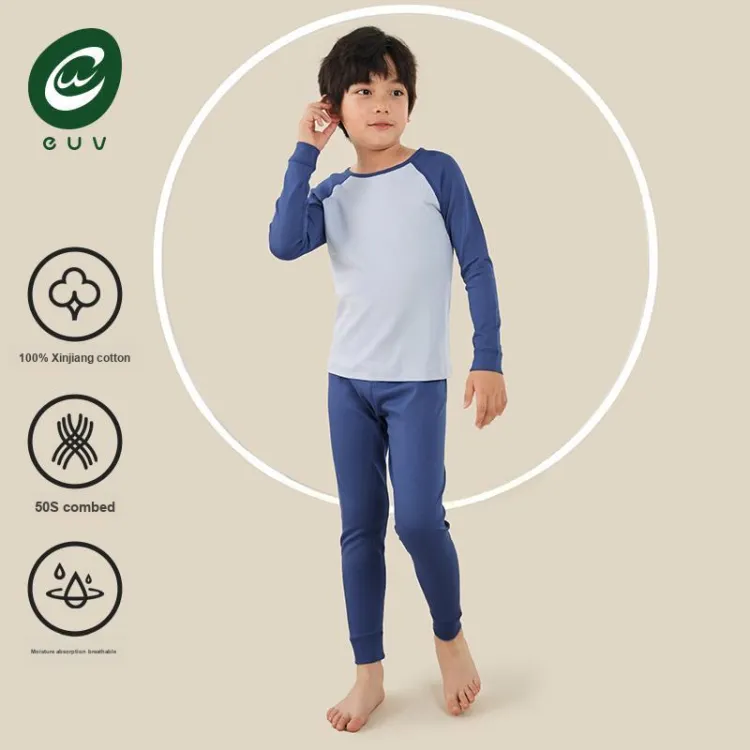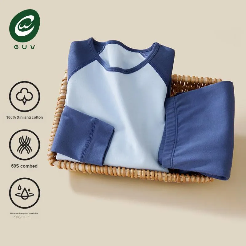 Euv Осенний Зимний Комплект Нижнего Белья Двухкомпонентный Комплект Минималистский Стиль Цветовой Блок Детский