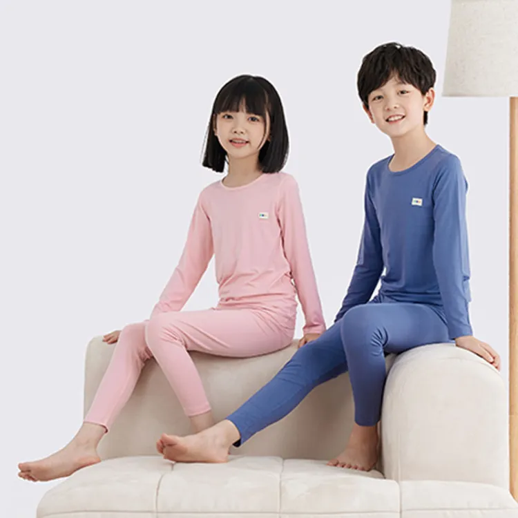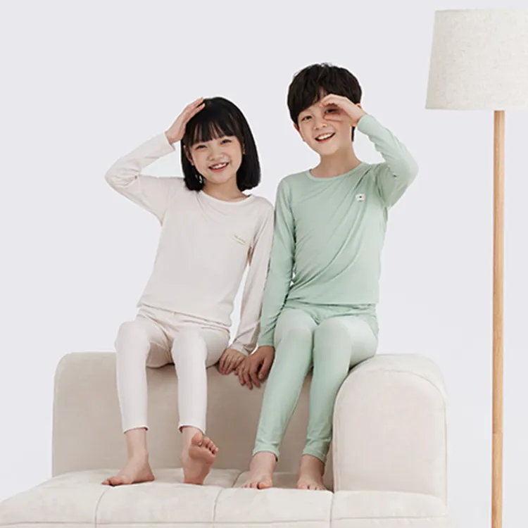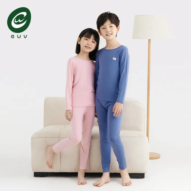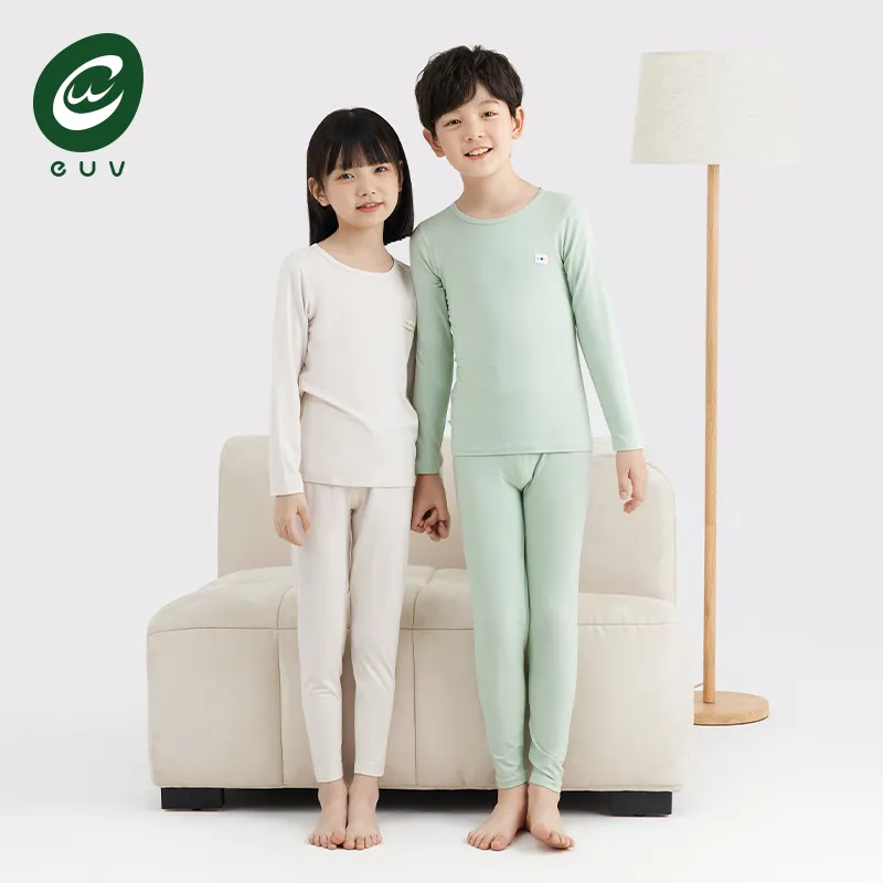 Euv Осенний Зимний Комплект Нижнего Белья Двухкомпонентный Комплект Минималистский Стиль Однотонный Детский