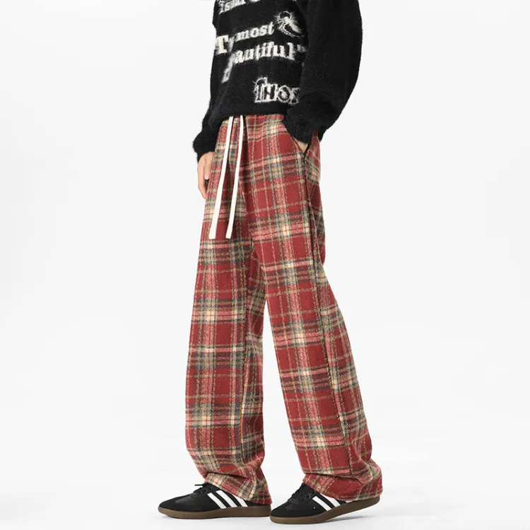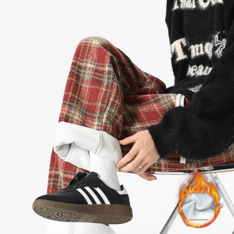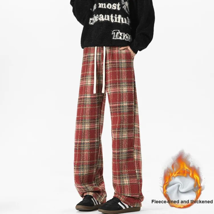 Красный, в клетку, с флисовой подкладкой.