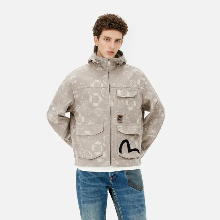 EVISU Куртки и Пальто Мужской Коричневый С принтом по всей поверхности
