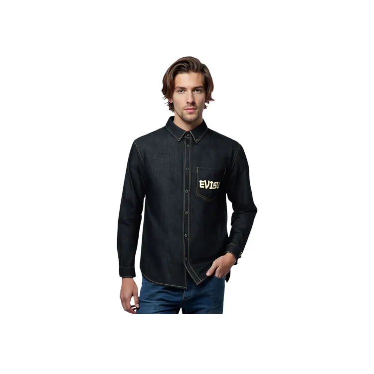 EVISU Джинсовый Синий Мужские Рубашки