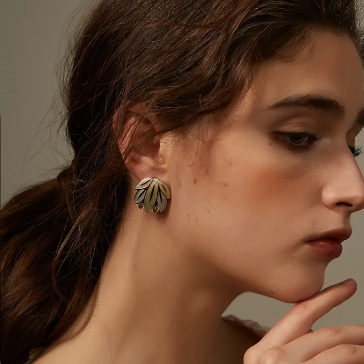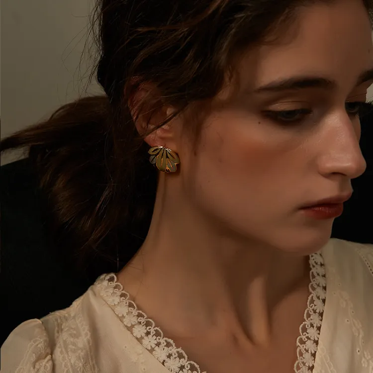 Exhibition Медный Эмаль Серебряная игла Серьги Женские