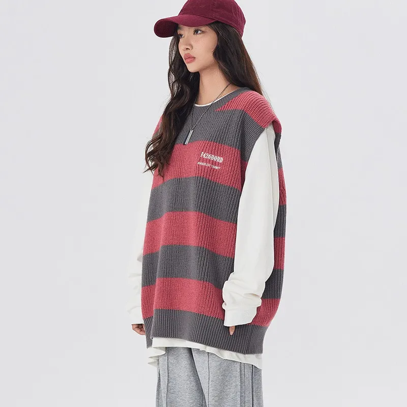 F426 Красно-серый Полосы Унисекс Жилеты