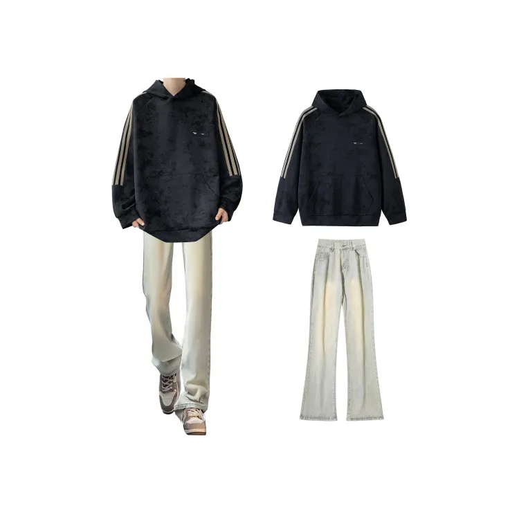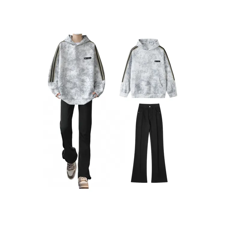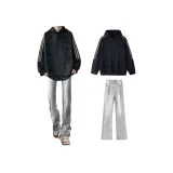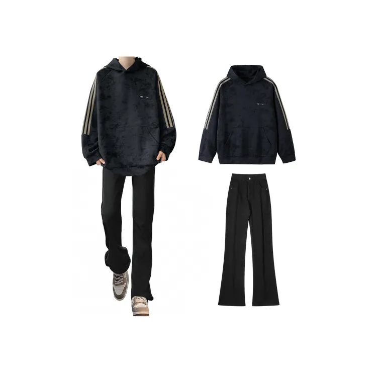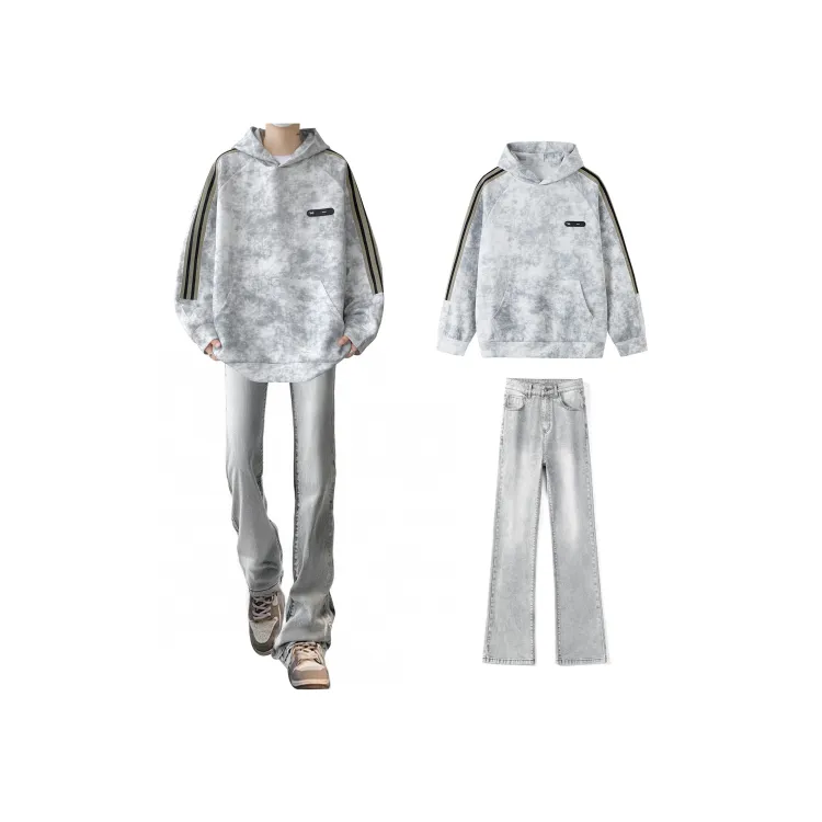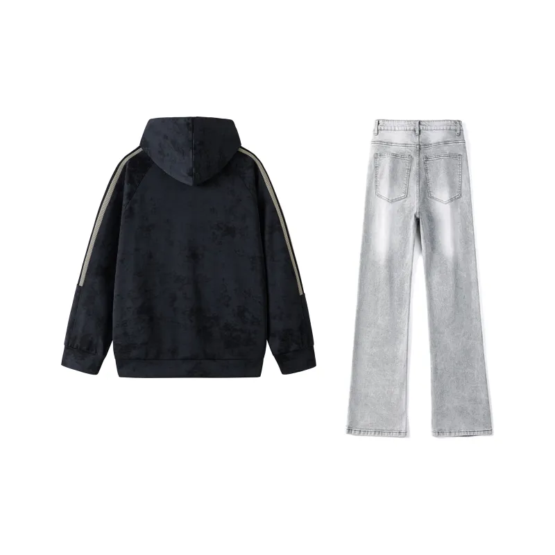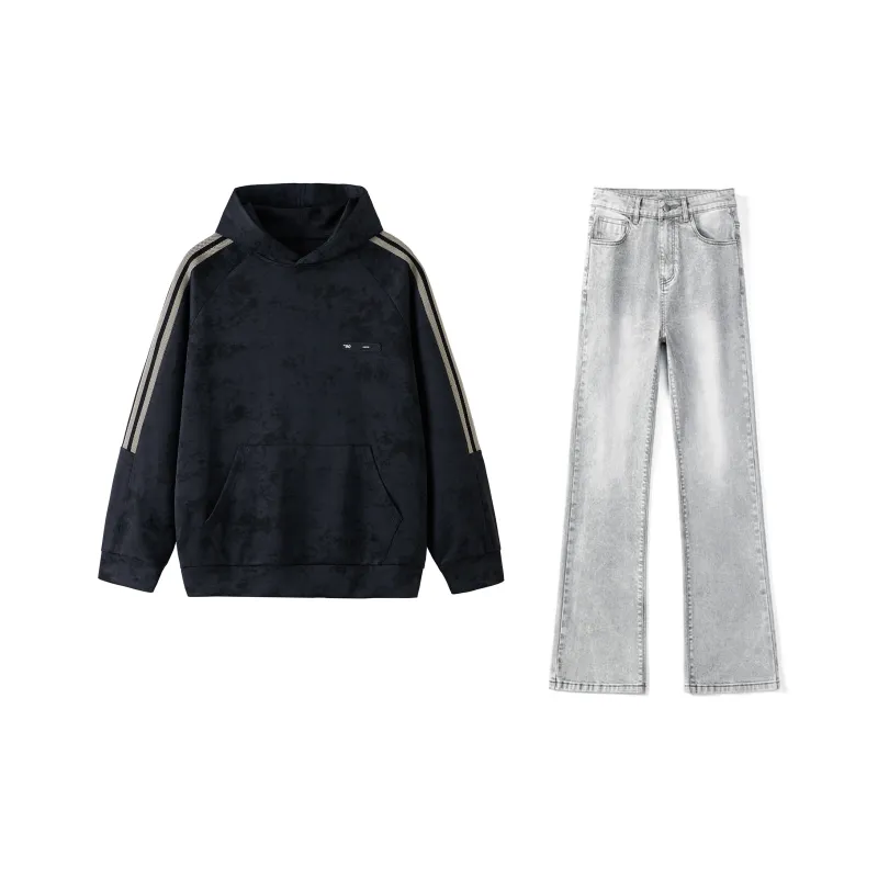 Комплект:Чёрный свитшот + дымчато-серые джинсы