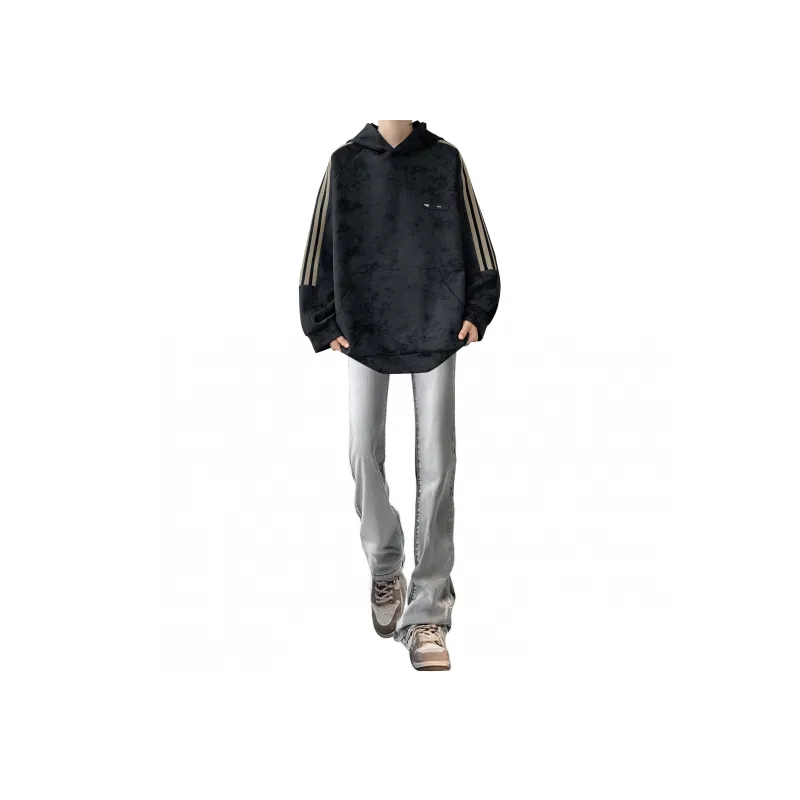 Чёрный свитшот + дымчато-серые джинсы