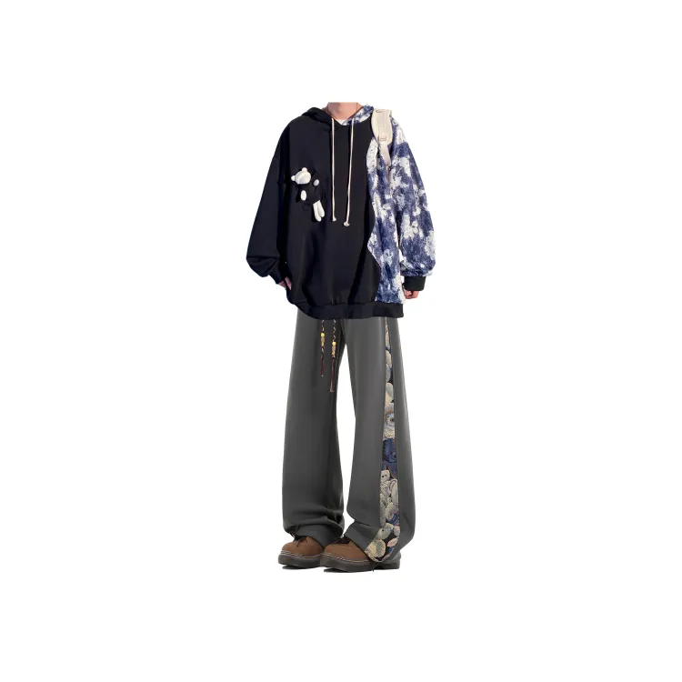 Чёрный свитшот + тёмно-серые повседневные штаны